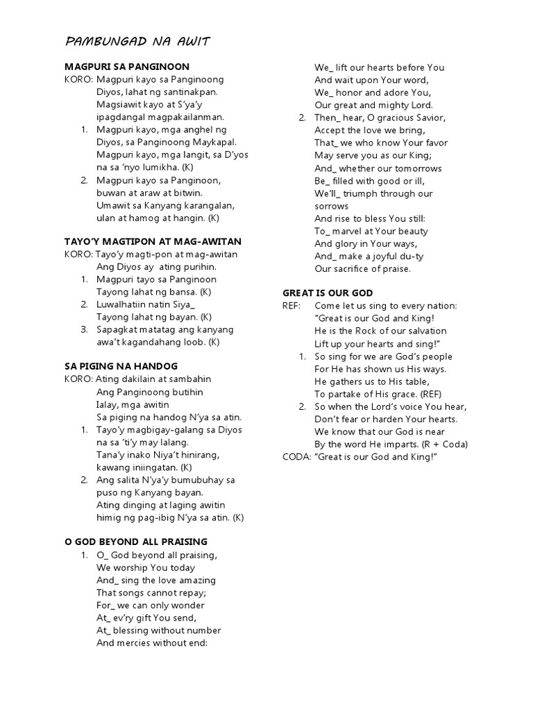 Only this I Want. MAGPASALAMAT KAYO SA PANGINOON Bm Em Magpasalamat kayo sa Panginoon A7 D F Na Syang lumikha ng lahat ng bagay dito sa mundo Bm Em Siyay gumawa ng buwan at mga bituin A7 D F Upang magbigay ng liwanag sa pagsapit ng dilim Bm Em A7 D F O magpasalamat sa kanyang mga biyaya at awa. Magsiawit sa Panginoon piano Chords Chordify.