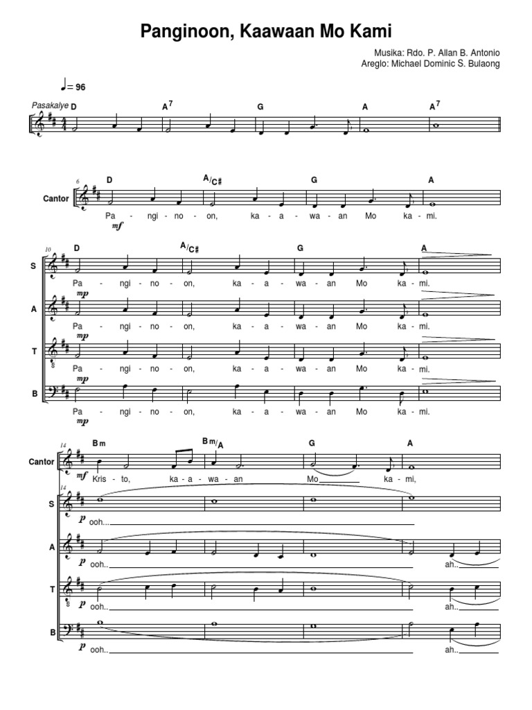 Sa lahat ng oras. Allan AntonioPiano Performance and Photo by. Download and print in PDF or MIDI free sheet music for Panginoon Kaawaan Mo Kami by Padre Allan B.