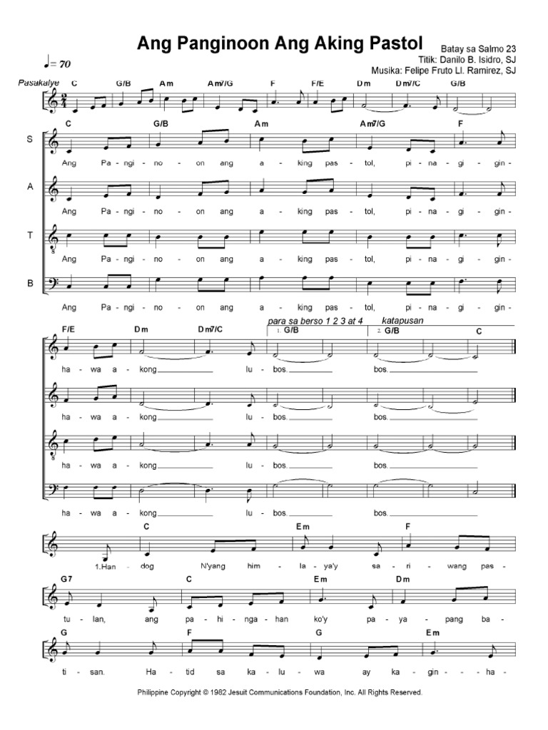 Ang sermon na ito ay marahil isa sa pinakakilala na verse sa Bibliya. ANG PANGINOON ANG AKING PASTOL Fruto Ramirez SJ Verse 1 onlyArrangement by Ruzzel ClemenoSung by the Servus Dei choir service of the Anticipated Mass of. Ang PANGINOON ang aking pastol hindi ako magkukulang ng anuman.