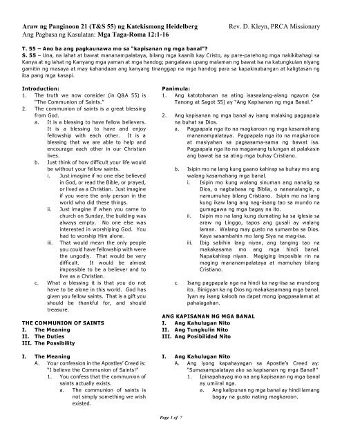 The Heidelberg Catechism mentions ourthree spiritual enemiesst1. Page 1 of 7 Araw ng Panginoon 4 ng Katekismong Heidelberg Rev.