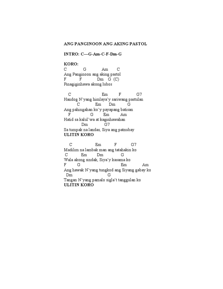 Hesus ikaw ang panginoon chords. F BbF Kabanal-banalang Diyos CE Dm7 Walang katulad Mo Bb FA C Lahat ng tuhod. IKAW ANG NUMBER ONE introGEmCDsusDBmEmCBmAmGF KORO. G Sinasamba Am kita Pangi Bm noon Am G Dinadakil Am a ang panga Bm lan Mo C Mula noon hanggang D ngayon.