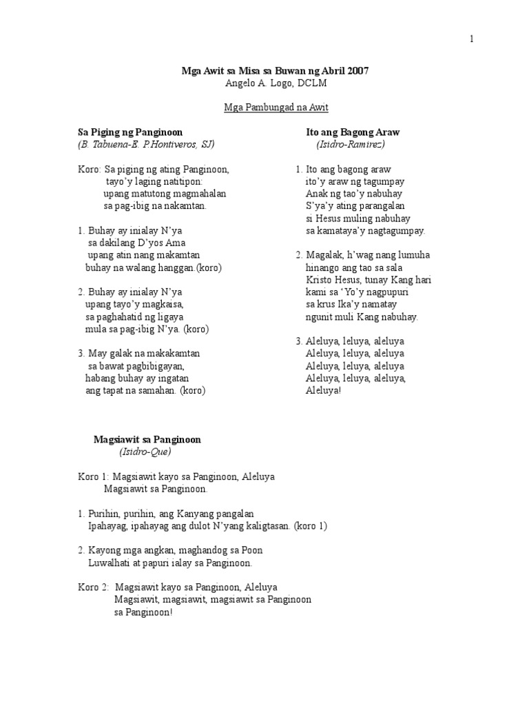 Halinat magsiawit at magbigay papuri sa diyos na ating hari halina at lumapit. Magsiawit sa panginoon epub download I am currently studying outside of the country and have just introduced your music to our American campus parish priest.