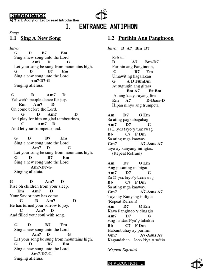 Nourish your soul with these classic Filipino Mass Song lyrics and music. Sa piging ng ating panginoon tayoy laging nagtitipon upang matutong magmahalan sa pag-ibig na makamtan. 2 days 15 talks Awesome and great blog January 25-27.