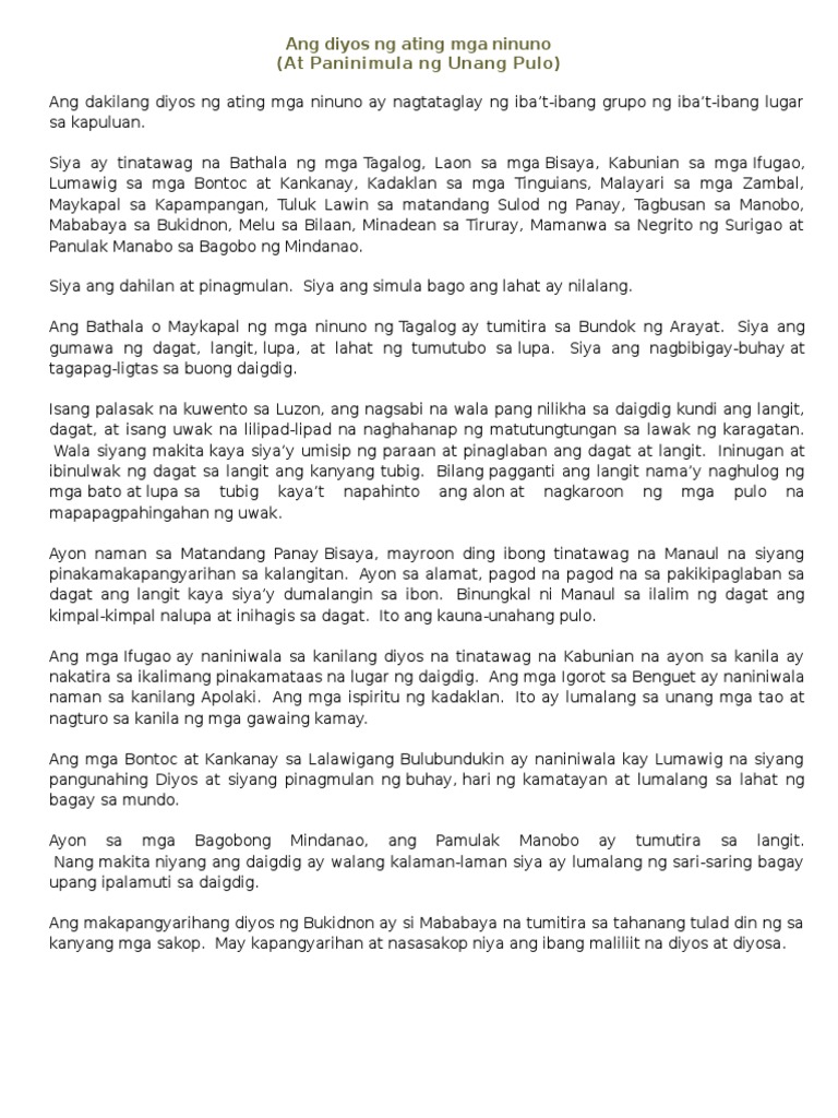 Sa modyul na ito malalaman ang kultura ng mga sinaunang Pilipino. -Pinamunuan ng 33 paraon. Sapagkat hinahanap ng Ama ang gayon na maging mananamba sa kaniya Juan 423.