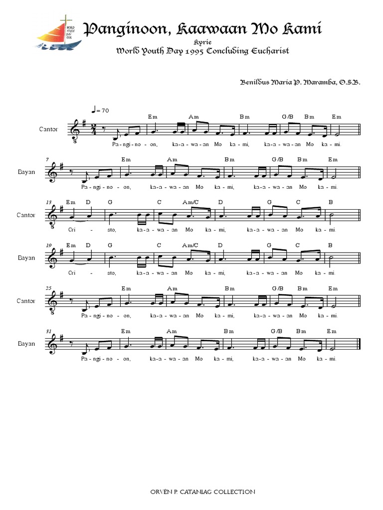 Panginoon Kaawaan mo kami Kristo kaawaan mo kami Panginoon Kaawaan mo kami. Download and print in PDF or MIDI free sheet music for Panginoon Kaawaan Mo Kami by Padre Allan B. Mapasaamin ang kaharian mo sundín ang loób.