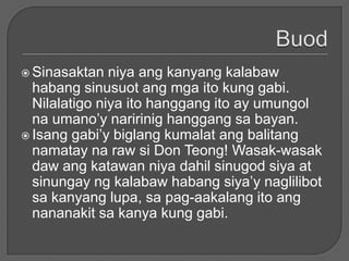 Isiniksik niya ang kanyang ulo kahit. Lungkot at galit ang aking naramdaman ng mabasa ko ang kwentong itolungkot dahil sa sinapit ng batang si Andres at galit naman dahil sa nagging ugali ni Aling Marta. WALANG PANGINOON Ni Deogracias Rosario MAIKLING KWENTO Paksa.