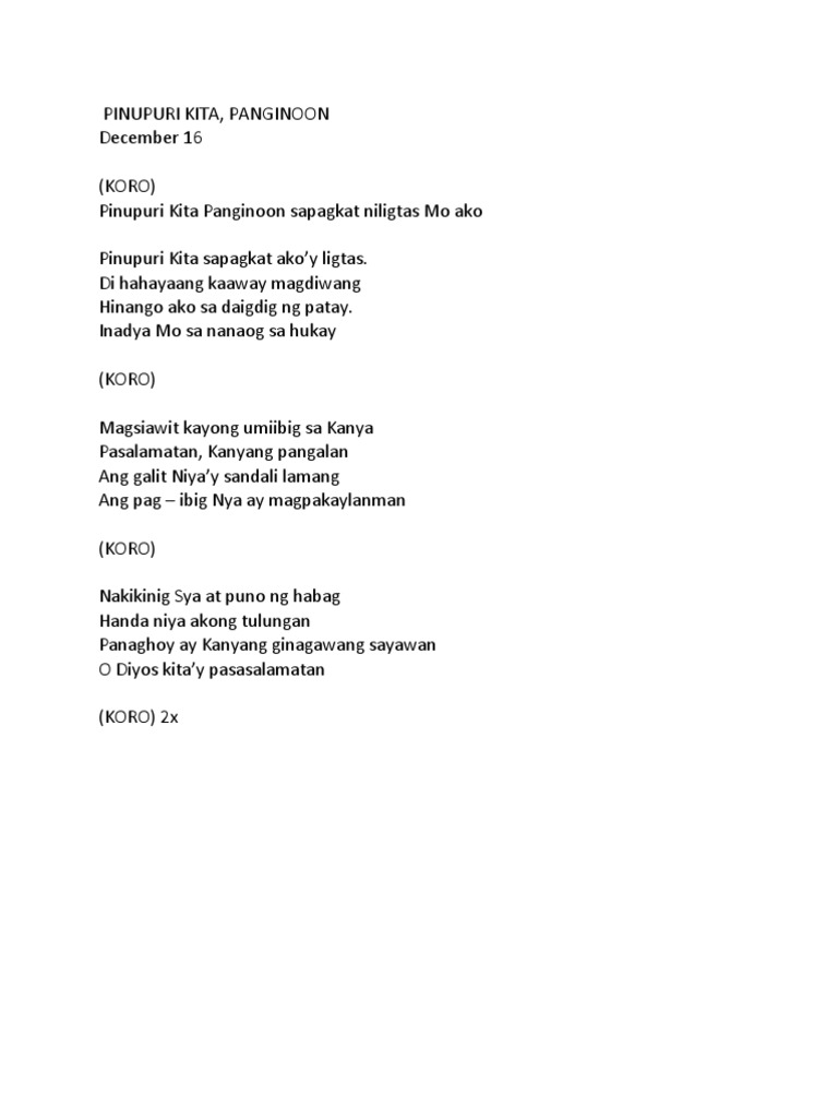 1 on a question. Ang lahat ng nilikha Nýaý mabuti pinagyaman Nýa ng lubusan. Purihin Sýa áy awitan at papurihan magpakailanman.